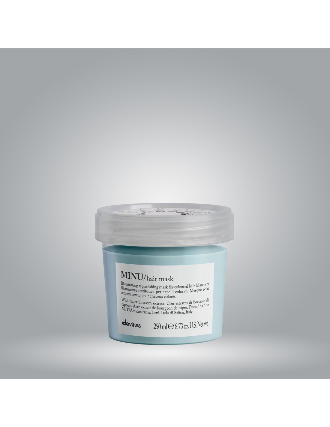 A mask for coloured hair that intensely moisturises and protects the colour. The formula, enriched with active ingredients, works on the hair to restore softness, shine and elasticity. Ideal for use after MINU shampoo to ensure long-lasting colour protection and healthy-looking hair.