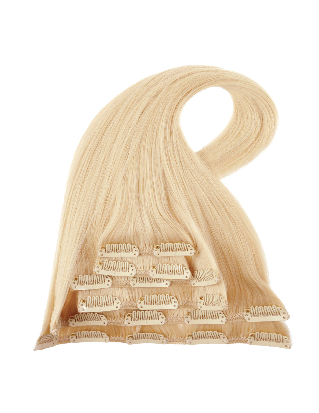 For a natural effect, the amount of clip-in hair should be similar to the amount of your natural hair. With a length of 50 cm, you will usually only need around 100 grams of hair, which is equivalent to one set of Clip In. See our tips for buying hair extensions.