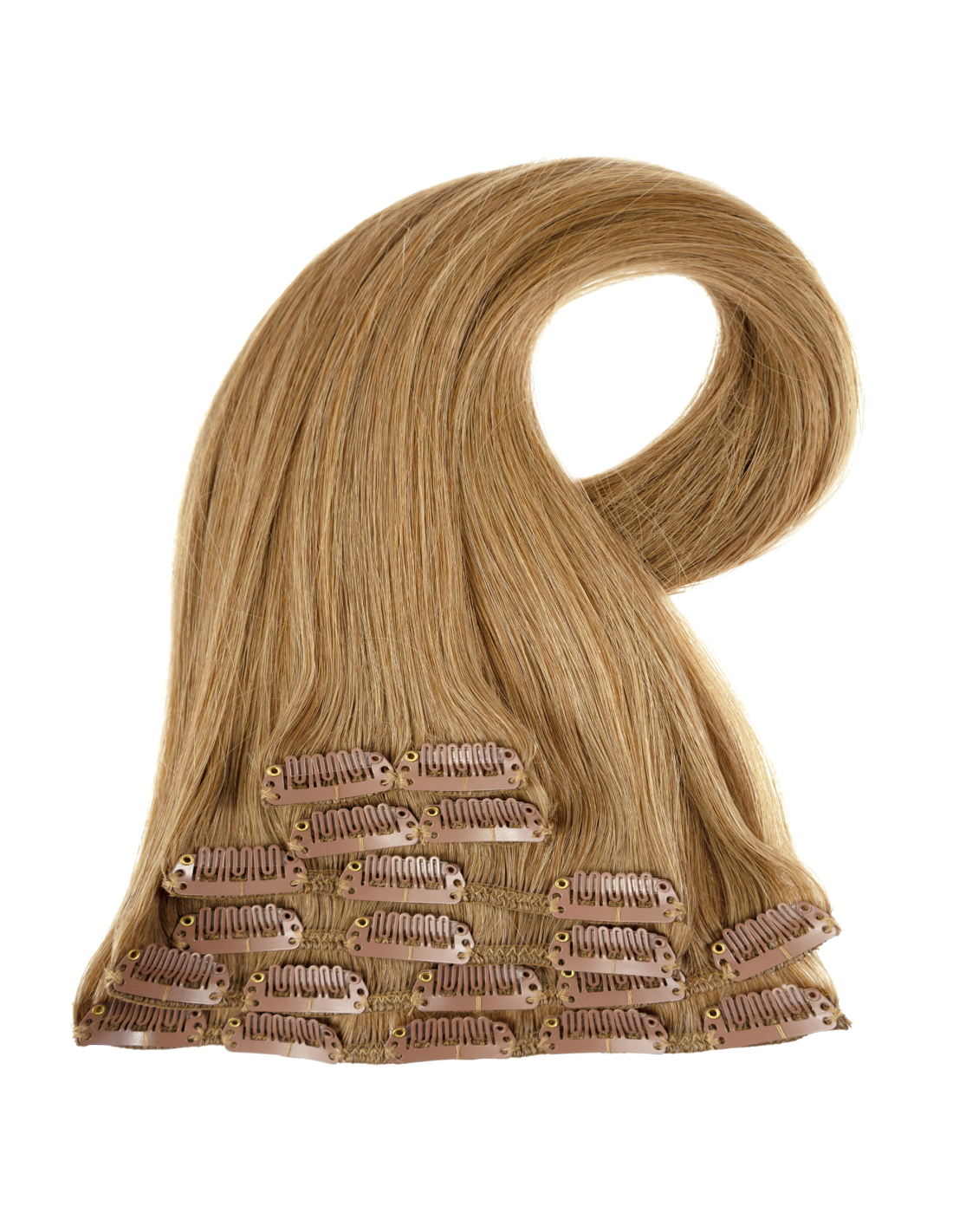 For a natural effect, the amount of clip-in hair should be similar to the amount of your natural hair. With a length of 50 cm, you will usually only need around 100 grams of hair, which is equivalent to one set of Clip In. See our tips for buying hair extensions.
