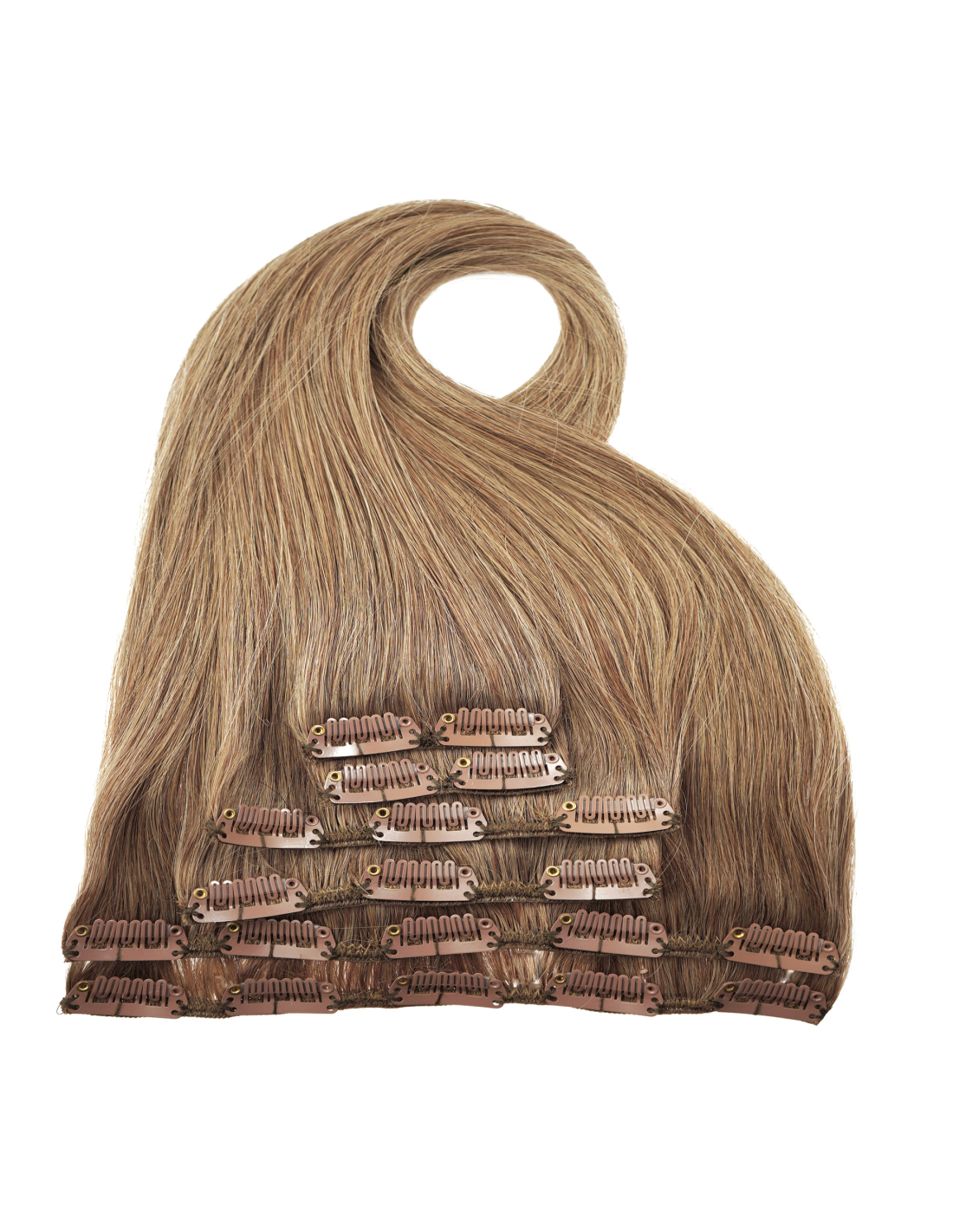 For a natural effect, the amount of clip-in hair should be similar to the amount of your natural hair. With a length of 50 cm, you will usually only need around 100 grams of hair, which is equivalent to one set of Clip In. See our tips for buying hair extensions.