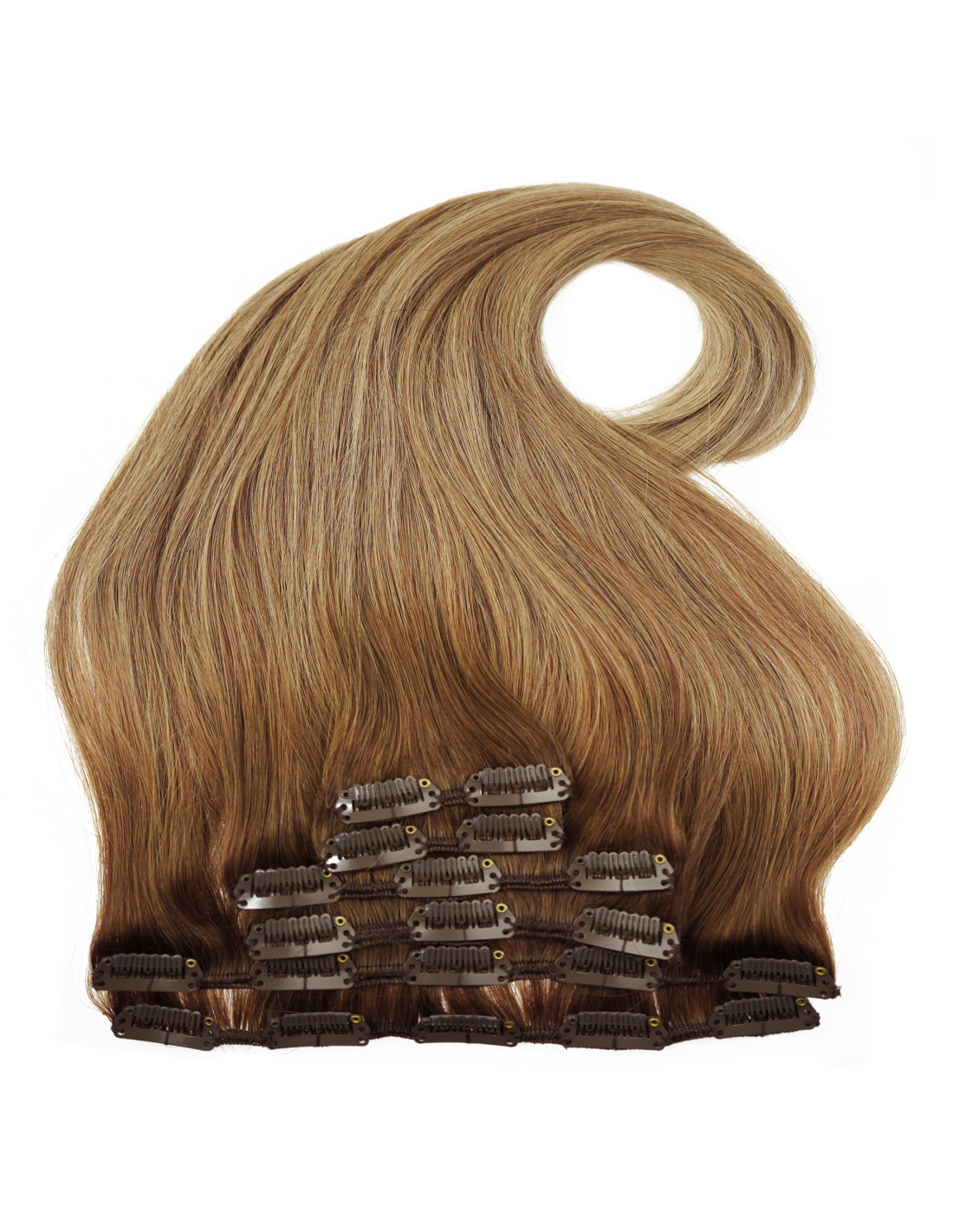 For a natural effect, the amount of clip-in hair should be similar to the amount of your natural hair. With a length of 50 cm, you will usually only need around 100 grams of hair, which is equivalent to one set of Clip In. See our tips for buying hair extensions.