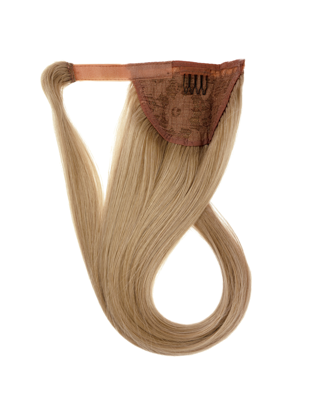 Hair extensions in the form of a finished ponytail.