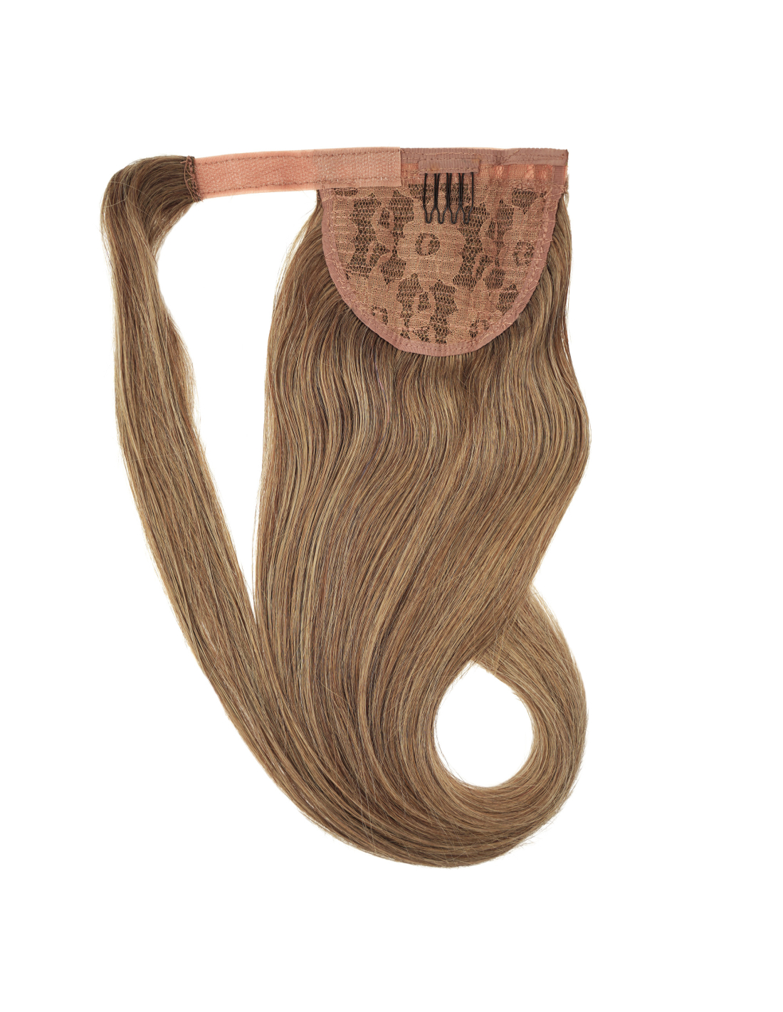 Hair extensions in the form of a finished ponytail.