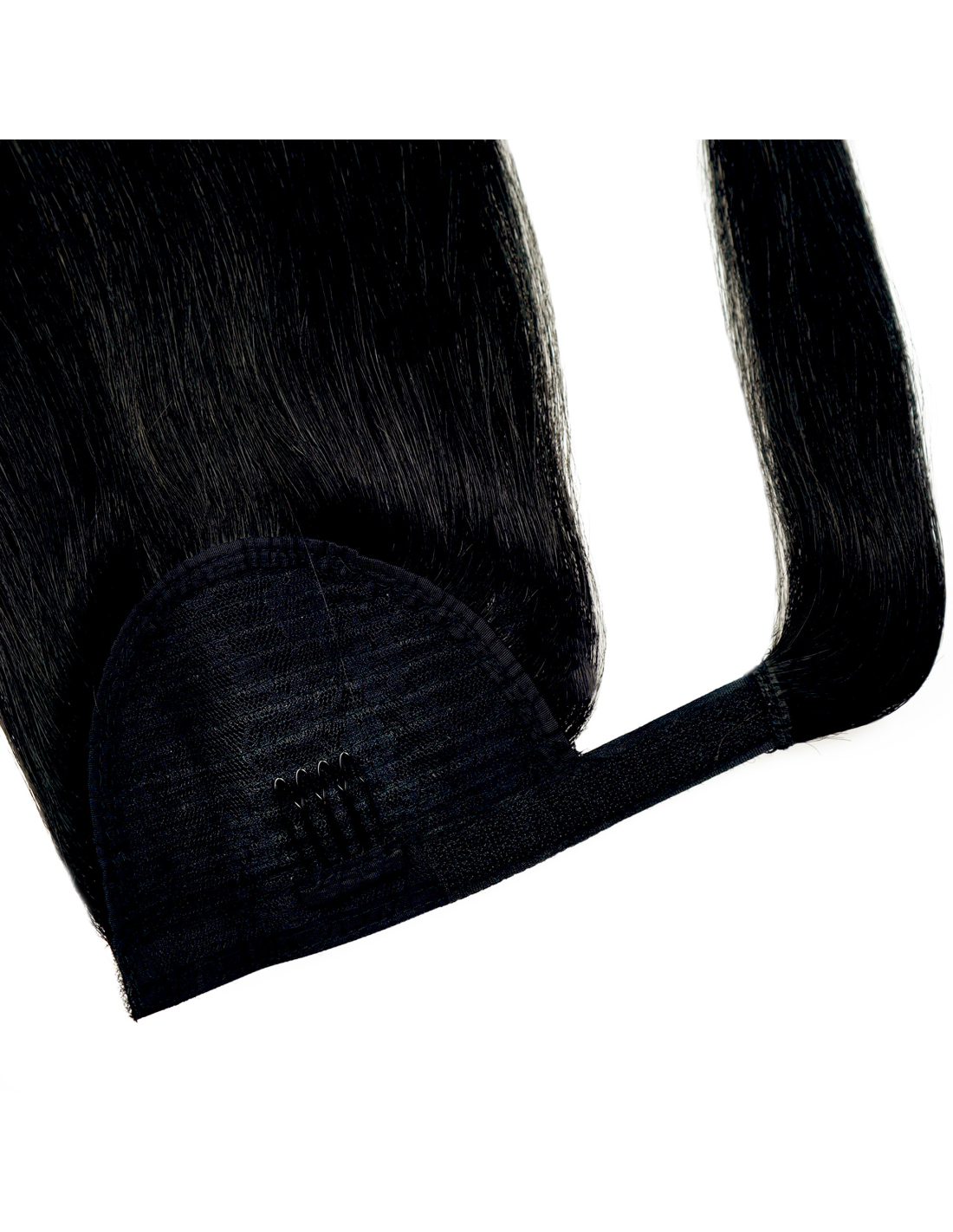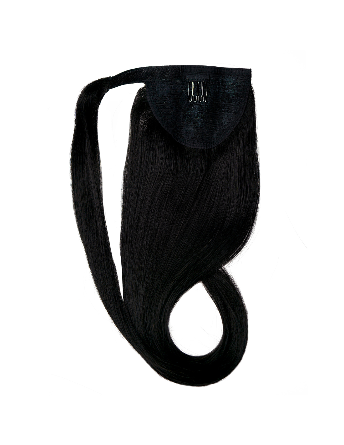 Simply fasten your hair into a ponytail, use the comb to attach the attachable ponytail, wrap the Velcro around it, circle it to mask the hair strand and you are ready to go.