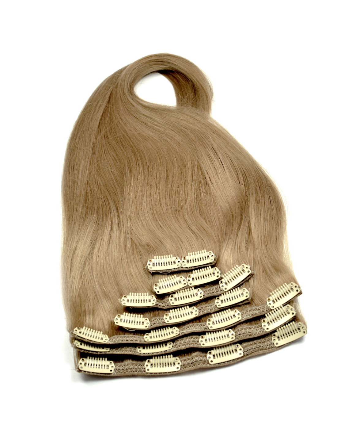 The Clip-In method involves attaching hair tapes to your own hair using clips. The clips are sewn onto the tapes and usually have a silicone cover to prevent them from slipping off your head.