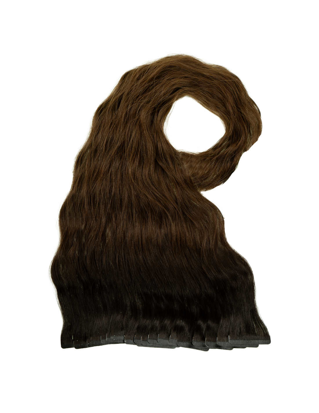Natural Tape On hair with imitation scalp and a leaf that ends in a standard Tape On.