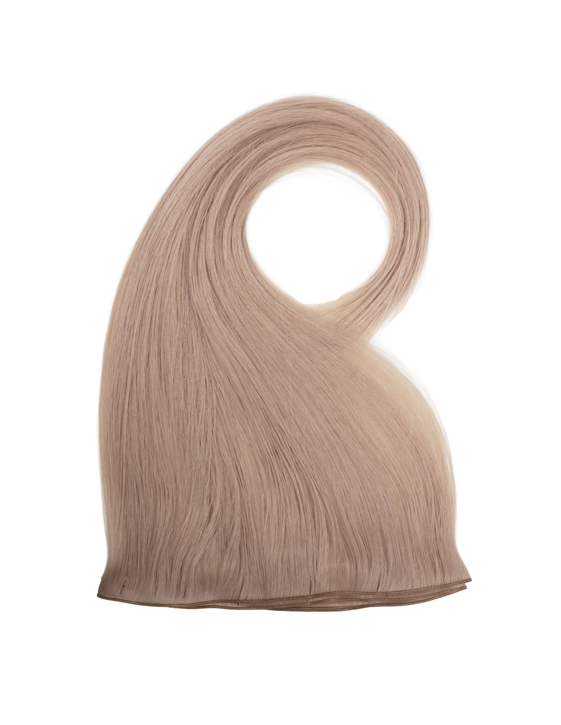 Natural hair extensions sewn on with tape, in an improved even less visible version.
