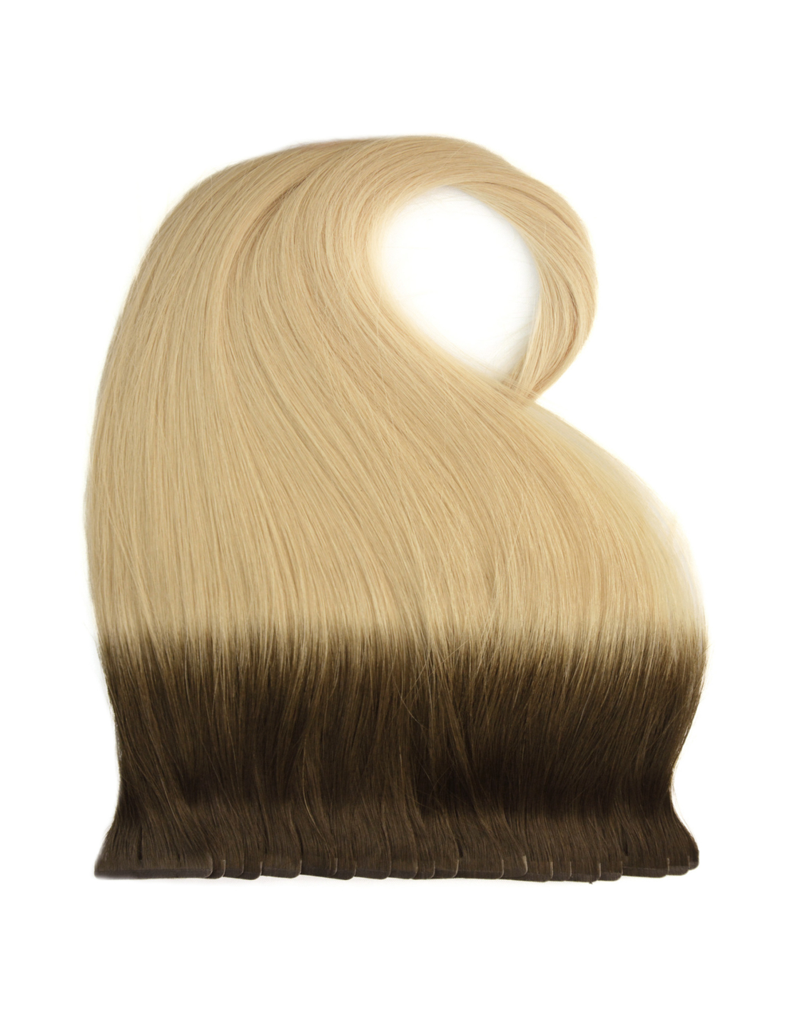 Naturalne włosy doczepiane Tape On z imitacją skóry głowy i listkiem zakończonym standardową wersją Tape On.