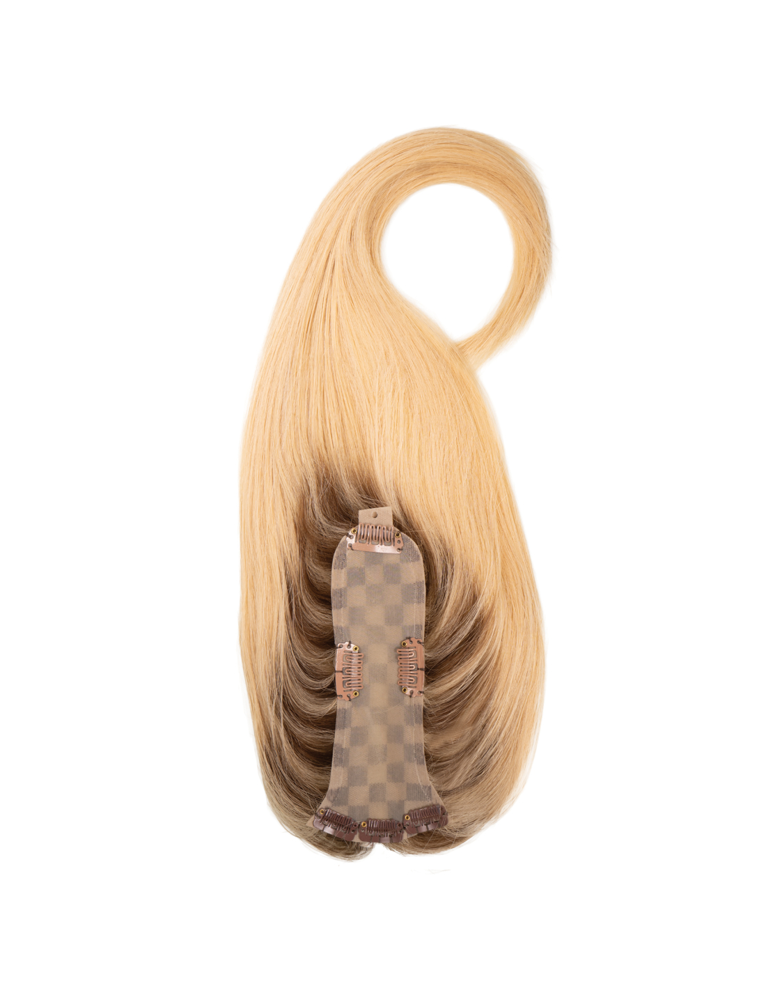 Topper ma długość 40 cm, co pozwala uzyskać subtelny, naturalny efekt bez nadmiernego obciążenia fryzury. Włosy NN+ pochodzą z selekcjonowanych źródeł – mają pełną łuskę i są nieco grubsze niż typowe włosy polskie, co zapewnia trwałość, objętość i estetyczny wygląd po każdym myciu.