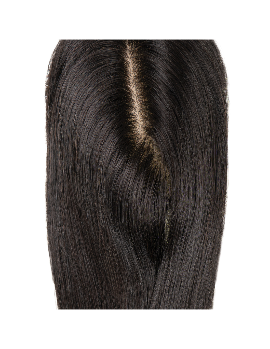 Topper z serii NN+ to idealne rozwiązanie dla kobiet, które chcą w naturalny sposób zagęścić włosy na czubku głowy lub zakryć miejscowe przerzedzenia. Wykonany z najwyższej jakości naturalnych włosów, cechuje się lekkością, dyskrecją i bardzo naturalnym wyglądem.